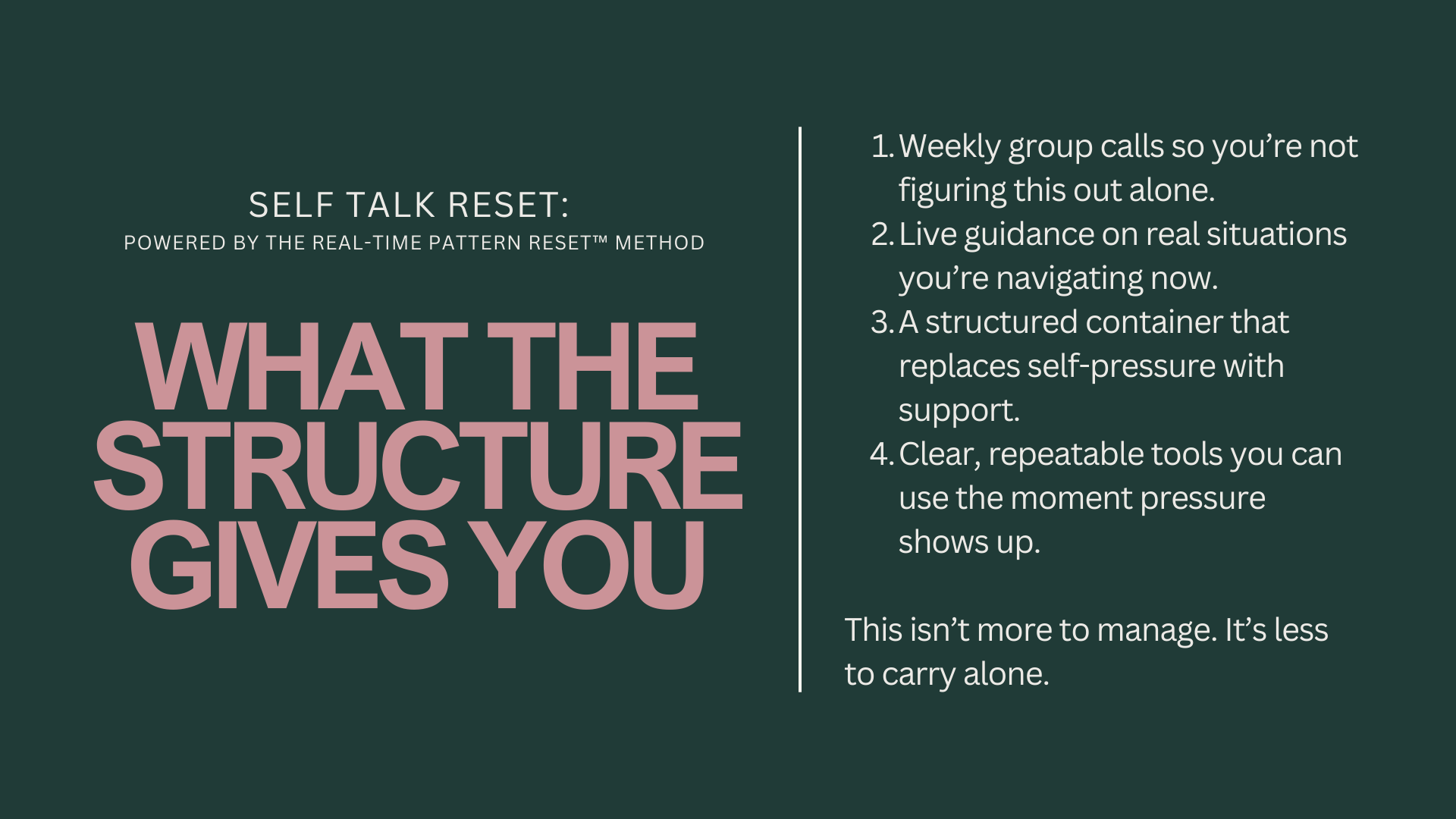 Self-Talk Reset spots are intentionally limited so real-time support and depth remain intact.