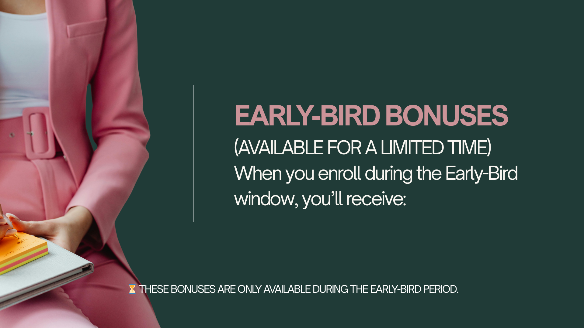 Limited spots · Early-bird bonuses ending soon